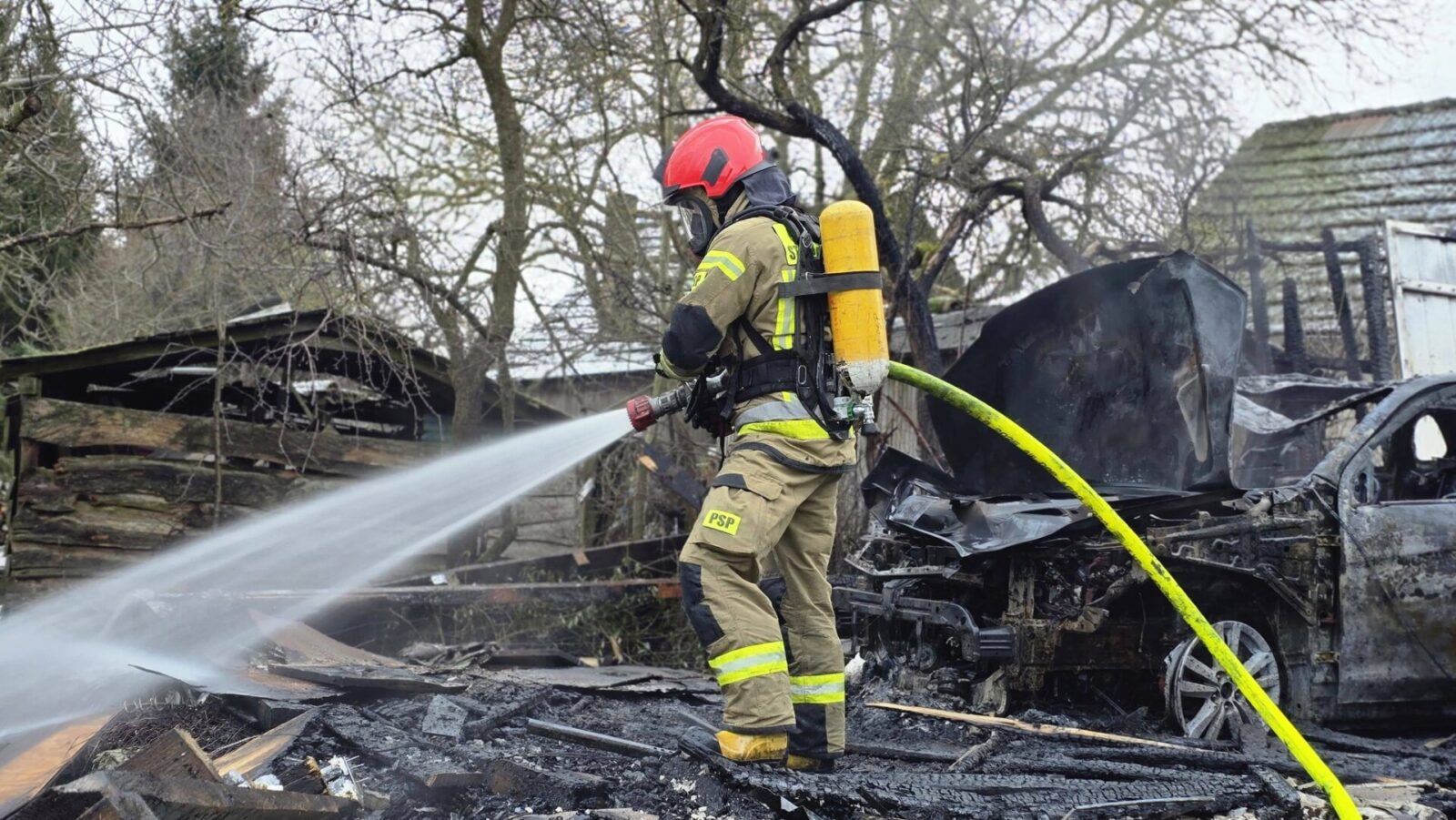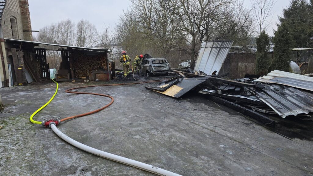 W Dobrej doszło do pożaru wiaty garażowej, której płomienie szybko objęły ocieniony w niej pojazd. Na miejsce niezwłocznie zadysponowano zespoły strażaków, którzy podjęli zdecydowane działania celem ugaszenia pożaru. Działania gaśnicze wymagały wykorzystania specjalistycznego sprzętu tj. aparatur powietrzno-butlowych, które pozwoliły strażakom na bezpieczne zbliżenie się do źródła ognia.