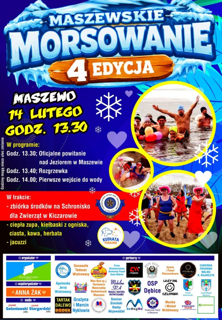 14 lutego Fundacja Region Powiat Gmina zaprasza mieszkańców oraz wszystkich chętnych nad malownicze jezioro w Maszewie na czwartą edycję niepowtarzalnego wydarzenia – Maszewskiego Morsowania. Celem tego spotkania jest przede wszystkim integracja społeczności lokalnej oraz promowanie zdrowego i aktywnego stylu życia wśród uczestników, którzy towarzyskie łączenie walentynkowych emocji z energią i zabawą znajdą właśnie w lodowatej wodzie.